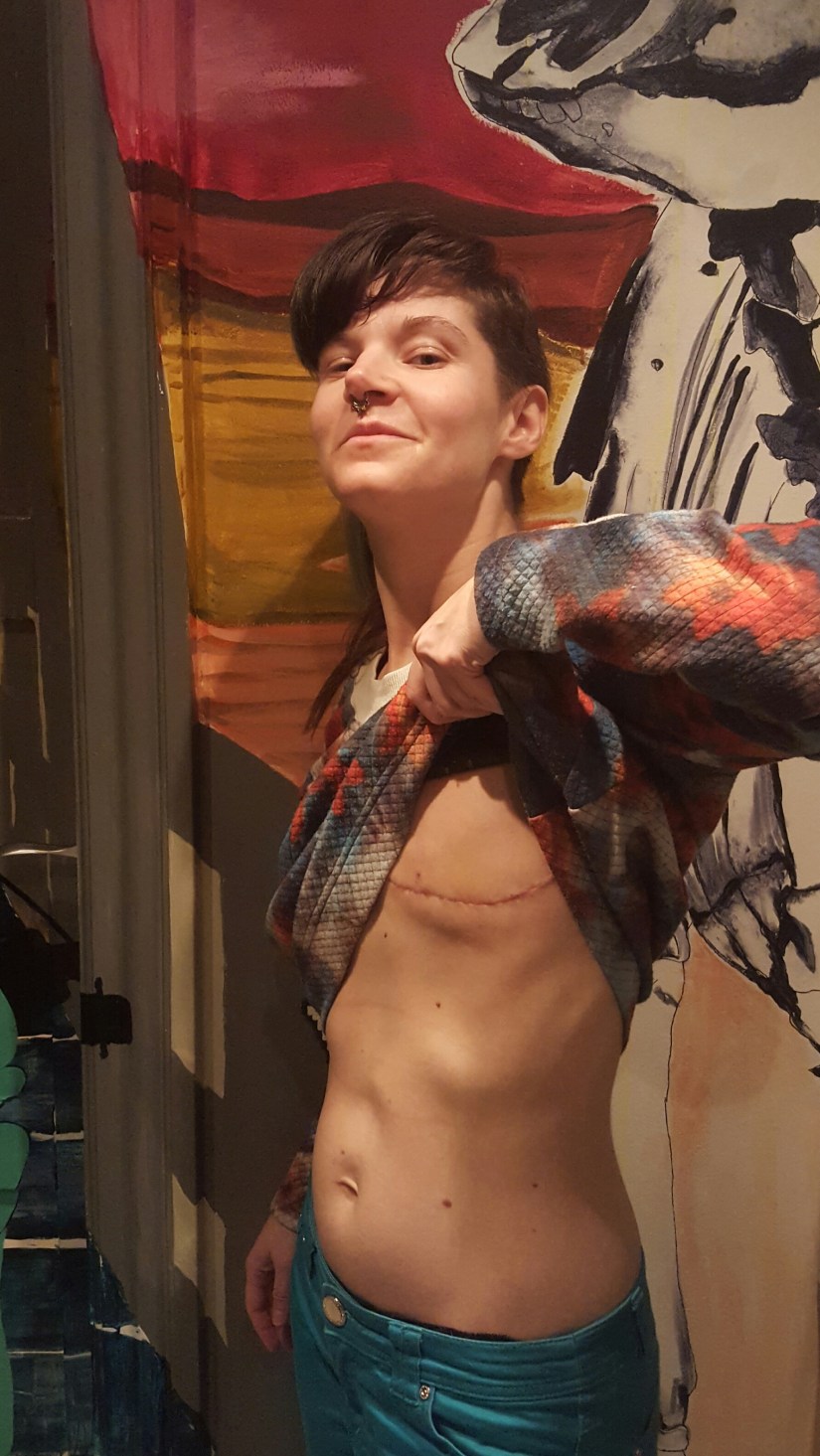 At the same time it’s going to be a very personal story. Having one breast is now a part of me and I don’t want to hide my disease with implants or a prosthesis. Soon I will cut my hair off and I will wear my scar proudly; being a Magical Uniboob and Queer Ninja going forward.